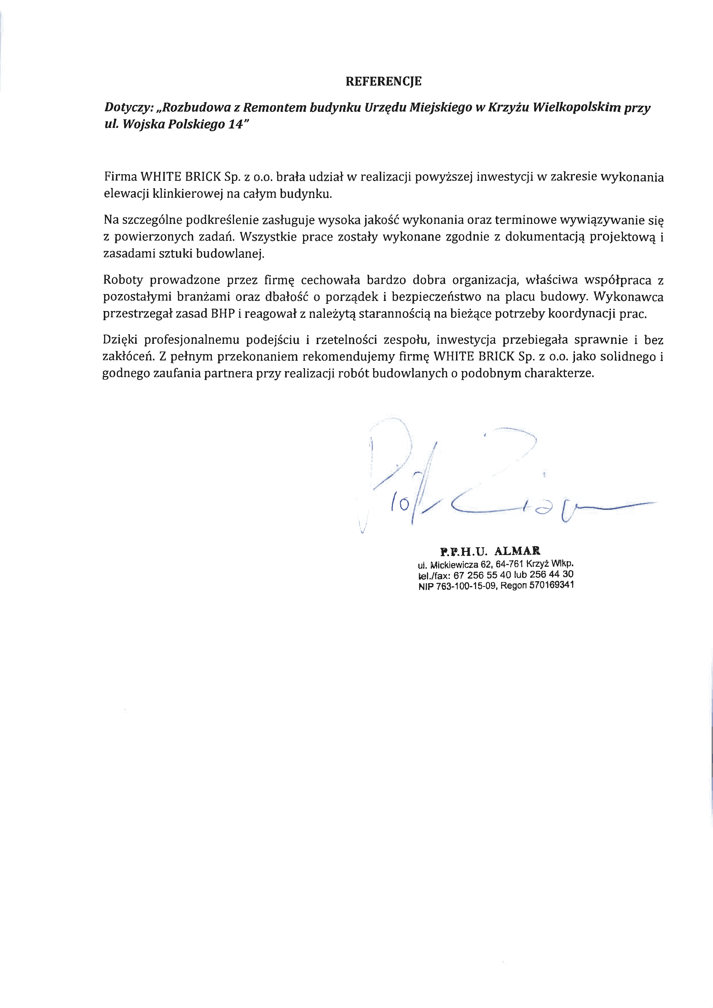 Referencje White Brick to potwierdzenie jakości naszych usług w zakresie elewacji klinkierowych i montażu betonu architektonicznego.