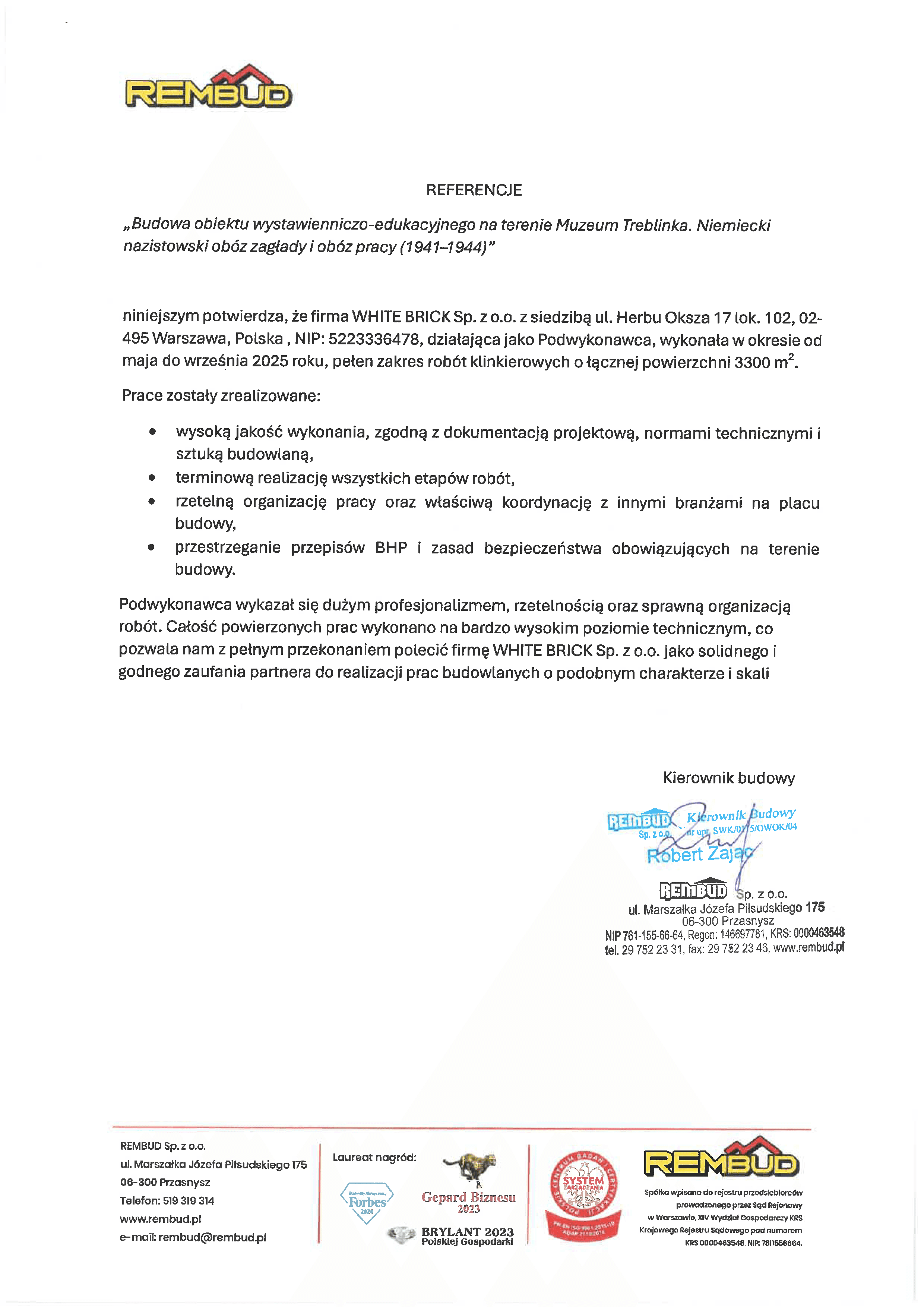 Referencje White Brick to potwierdzenie jakości naszych usług w zakresie elewacji klinkierowych i montażu betonu architektonicznego. Prezentujemy opinie klientów, inwestorów i architektów, którzy współpracowali z nami przy realizacji projektów na terenie całej Polski.